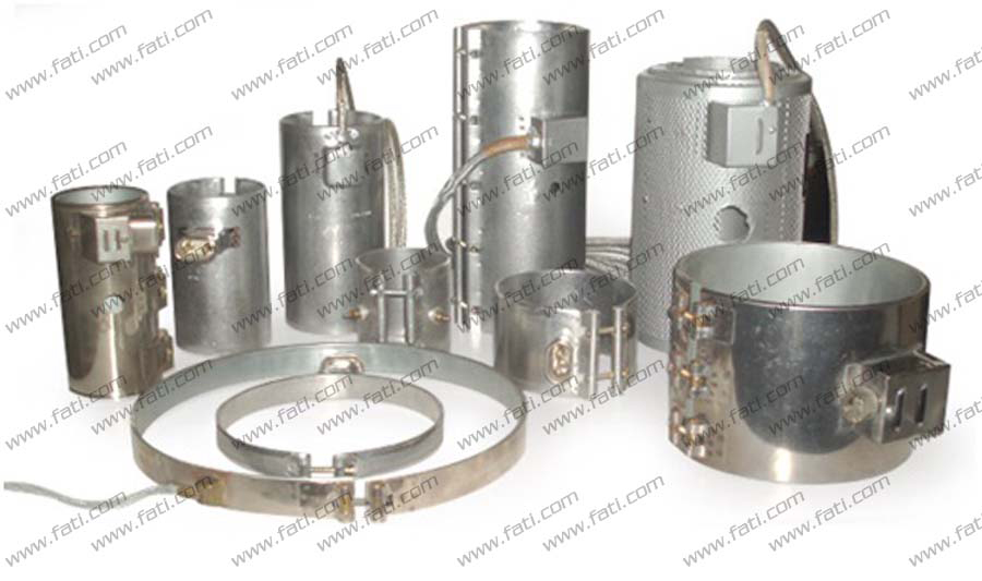 Metal or ceramic cast or strip heaters for heating dies and extruders.